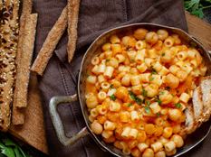 Csicseriborsós változatban is remek, néhány csík csirkemellel kiegészítve pedig a húsrajongók kedvence lehet ez a durumspagettivel készült, olaszos hangulatú tészta.