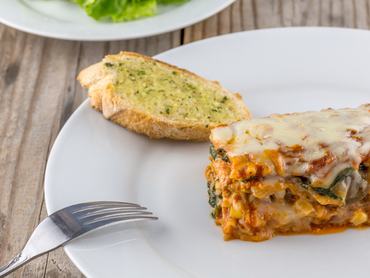 Kezdd el rétegezni egy jénaiban a lapokat úgy, hogy alulra és a tetejére is egy kevés szósz kerüljön. Ha ezzel megvagy, kanalazd az egész tetejére a tejfölt, szórd rá a reszelt sajtot, és süsd készre 35 perc alatt.