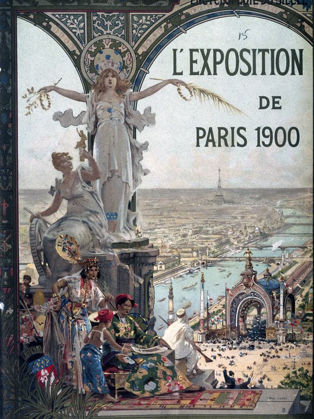 Képzeletbeli utazásunk Párizs szívében, a Concorde téren, a világkiállítás főbejáratánál kezdődik. A látogatókat itt óriási, díszes fémkapu várta, amely alatt akár százan is elfértek. Az expó területén cilinderes, sétabotos urak, csokornyakkendős, könnyű kalapos fiatalemberek, karcsúra fűzött derekú nők, matrózruhás kisfiúk és varkocsba font hajú kislányok nyüzsögtek, s az európai arcok között feltűnt egy-egy messze földről érkezett vendég is. A belépőket gondosan kialakított franciakert várta, és már innét láthatták a Szajnán átívelő Sándor híd (Pont Alexandre III.) aranydíszeit. A híd a világkiállításra készült, a megnyitó előtt egy nappal, 1900. április 14-én adták át. Szintén az expóra épült meg egy kisebb és egy nagyobb hófehér palota, a Petit és a Grand Palais, amely a képzőművészeti alkotásoknak adott – és ad azóta is – helyet.