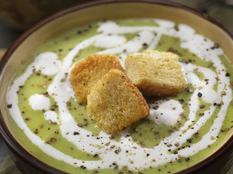csalánkrémleves szarvasgombás krutonnal