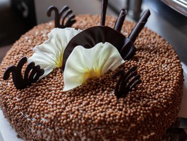 Ha a tészta kihűlt, kend meg a lekvárral, arra mehet a krém, legvégül pedig a csokoládéforgácsok. Jót tesz neki néhány óra a hűtőben.