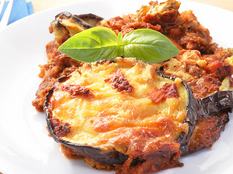 A vastagra vágott padlizsánszeleteket kissé olajozd meg, puhítsd meg őket egy kontaktgrillben (vagy faszenes grillen), majd vágd kockákra. A sárgaborsót főzd meg sós vízben vagy alaplében. Egy kevés forró olajon párold üvegesre a vöröshagymát, majd add hozzá a húst és a fokhagymát, és keverd fehéredésig. Ha a hús elkészült, add a keverékhez a többi hozzávalót, és adj a keveréknek még legalább negyedórát. (Ha időközben szükséges, egy kevés paradicsomlevet vagy alaplét is önts alá.)