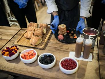 Bár nem magunk készítettük, magunknak díszítettük gyümölcsökkel és házi fagyival a frissen sütött kürtőskalácsot. Te tudod, milyen alakú a kürtőskalács készítéséhez használt sütődorong?