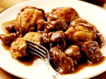 Vágj apróra minden alapanyagot, és egy kevés olajon pirítsd össze a bacont, a lisztben megforgatott húst és a hagymákat. Ha ezzel megvagy, add hozzá a zöldségeket, és sorban az összes alapanyagot. 150 fokos sütőben adj neki 1,5 órát. A gombócok tésztáját keverd el annyi vízzel, amennyitől összeáll, formázd meg, és adj neki fedő alatt még 20-25 percet a ragu tetején.