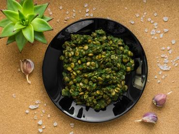 A forró zsiradékon adj néhány percet a fokhagymának, majd mehet hozzá a spenót és az alaplé. 5 perc után add hozzá sorban a többi alapnyagot, majd melegítsd össze alaposan, és párolt, mentával és korianderrel ízesített rizs tetején tálald.