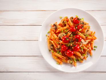Főzd meg a tésztát lobogó, sós vízben, közben puhítsd meg az olajban a fohagymát és a gombát. Néhány perc után add hozzá a paradicsomlevet és paradicsompürét, majd az ízesítőket, és forrald össze az alapanyagokat. Az articsókát, rizstejszínt és olívát elég, ha a végén adod hozzá. Friss bazsalikommal és a sörélesztőpehellyel a tetején tálald.