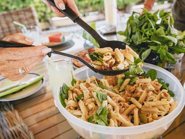 Mediterrán hangulatban, jó sok rozmaringgal és oregánóval készítettük el ezt a fogást, amihez negyedóra sem kellett. Durumtésztával tálalva és sós lében eltett tonhallal készítve még egészségesebb változatát dobhatod össze.