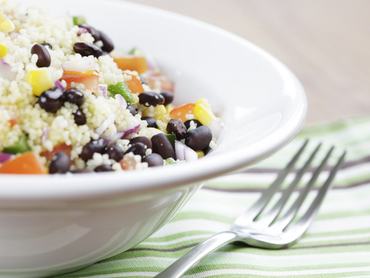 Forrázd le a kuszkuszt az alaplével, majd lefeve hagyd állni negyedórán át. Ezek után már csak annyi dolgod van, hogy alaposan befűszerezd és összekeverd a többi alapanyaggal. Egy-egy kanál csípős salsával a tetején tálald.