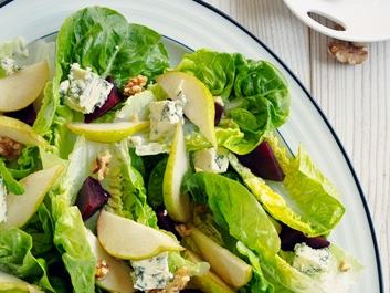 A kéksajt és a saláta mindig jól működik együtt, legyen szó jégsalátáról vagy fejes salátáról. Ennek a tetejére mi egy adag meleg, fokhagymás vajban megforgatott friss, tavaszi retket is készítettünk.