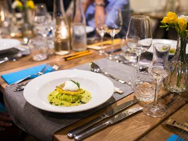 Négyféle makit és néhány állandó székelyes fogást kóstoltunk a tekercseket bemutató vacsoraesten. Lehet, hogy csak a hangulat vagy zellerből (tényleg) készült párlat miatt, de nekem a japános sorba illeszkedett a krémes tökfőzelékkel, sózott, cukrozott cukkinivel tálalt pisztráng is, amit tréfás kedvünkben el is kereszteltünk góbé nigirinek.