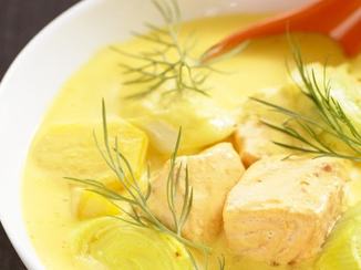 Ha csak egy kevés lazac van otthon, de összedobnál belőle egy remek kétszemélyes vacsorát, készítsd el ezt a sűrű levest, amit mi fokhagymával és friss kaporral dobtunk fel.