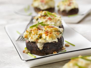 Süsd elő az ízesített, vajjal kissé megkent gombafejeket 10 perc alatt, majd a többi hozzávalóból keverj tölteléket és oszd el a gombafejeket. Tíz perc alatt olvaszd rá a sajtot, és már tálalhatod is.