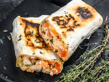 Az oldaluk behajtása után tekerd fel a wrapokat és ha még olvadtabb sajtott szeretnél, adj midnegyiknek még 2 percet a forró kontaktgrillben.
