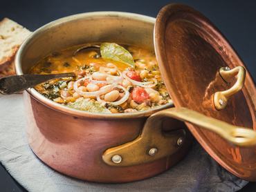 Egy jó desszert mellette éppen elég, mondjuk egy sütőtökös krémmel és Amarettoval készült tiramisu, így a főfogás akár ki is maradhat. Ez a leves remekül laktat, főleg, ha egy nagy adag fokhagymás-fűszervajas kenyér is kerül mellé.