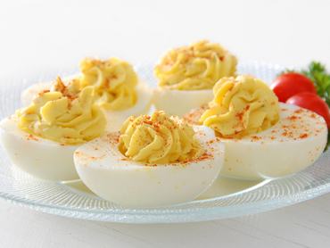 - A kapott masszát tölsd az üregekbe és a megtöltött tojásokat tedd egy tálra.