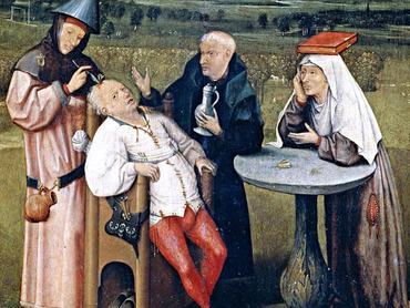 A Kőoperáció című festmény bizarr jelenete egy középkori németalföldi szólás ismeretében válik érthetőbbé, miszerint „aki bolond, követ hord a fejében”. Kérdés viszont, hogy – átvitt értelemben – meg lehet-e szabadítani bárkit attól, hogy ostoba legyen? És ki az igazán bolond: a páciens vagy az orvos (sarlatán?), aki trepanációt hajt végre?