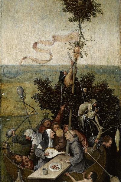 A flamand festő alkotásait a művészettörténészek kétféleképpen értelmezik. Az egyik elképzelés szerint Bosch moralista, aki mélyen hívő keresztényként az emberi gyarlóságokat és bűnöket ostorozza. Mások szerint egy tréfacsináló, akinek festészete korának szatirikus, humoros miniatúráiból táplálkozott. Életéről, festményei keletkezésének körülményeiről keveset tudunk, szimbólumai közül több a saját korában is rejtélyes volt, ma pedig még inkább az. Képeinek ismerői szerint mindenesetre a korsó a bujaság szimbóluma; a hal a sátáni gonoszság jelképe, az eper jelenheti a földi kéjt, a mohó élni vágyást, a megfeneklett hajó a lezüllött egyházat, a fordított tölcsér pedig, amit alakjai fejére tesz, a csalárdságot.