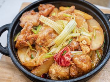 A kung pao népszerű kínai fűszeres étel, ami hagyományosan rántottcsirke-falatkákat, földimogyorót, zöldségeket és csilipaprikát tartalmaz.