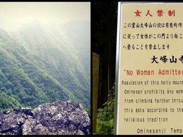 Szintén a távol-keleti szigetországban lévő, szentként tisztelt helyszín a Honsú-szigeti Omine-hegy, melynek tetején a japán buddhizmus sugendó ágazatának központja található. Az irányzat fontos eleme az aszketizmus, ezért a 8. században alapított kolostor lakói szigorúan távol tartják magukat minden világi örömtől, beleértve a nők látványát is, ami esetleg tiltott vágyakat ébreszthetne bennük. A hegy lábánál tábla figyelmezteti az odalátogatókat, hogy nőknek tilos a kapuknál tovább menniük, ami a japánok vérmérsékletéhez illően inkább engedelmes kérés, mintsem tiltás, ugyanakkor jobb betartani a szabályokat, mintsem megkockáztatni egy kellemetlen incidenst. Az Omine-hegy 2004 óta szintén UNESCO világörökségi helyszín.