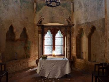 Az említett kápolnában található freskók gyakran ámulatba ejtik a turistákat, van köztük például egy női felsőtesttel és lóaltesttel rendelkező lényt ábrázoló kép, melynek pogány ikonográfiája látszólag ellentmond a középkori kereszténység elveinek: ami még ámulatba ejtőbb, hogy a kentaurnő a bal kezével nyilaz, holott a balkezesség sátáni tulajdonságnak számított a korabeli hiedelmek szerint.