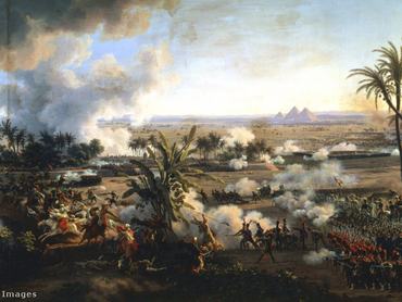 1798. július 21-én a Nílus nyugati partján fekvő Embebeh közelében, a gízai piramisoktól alig 15 kilométerre csapott össze Bonaparte Napóleon tábornok 25 ezer francia katonája az egyiptomi mamelukok és az oszmán-törökök kétszeres túlerőben lévő seregével. A kimerült, a hőségtől és vízhiánytól megviselt francia sereg Napóleon buzdításának és taktikai zsenijének – itt vetette be először Bonaparte egyetlen történelmi jelentőségű harcászati újítását, a gyalogsági négyszöget – köszönhetően győzelmet aratott, négy nappal később bevette Kairót, így Alsó-Egyiptom, októberre pedig Felső-Egyiptom is a franciák kezére került. Az egyiptomi kaland végül mégis kudarccal végződött a franciák számára, akik 1802-ben a párizsi békében elismerték az afrikai országot az Oszmán Birodalom részének.