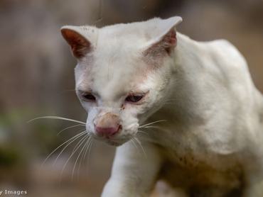 Életük megpecsételődött, amikor olyan színnel jöttek a világra, amely alkalmatlan arra, hogy rejtőzködésében segítse az állatot. Ez akadályozza őket a létfenntartásához szükséges vadászatban, az őrá vadászó nagyobb ragadozók figyelmét viszont úgy kelti fel, mintha jól láthatósági mellényt viselne. A kolumbiai Medellín természetvédelmi parkjában élő albínó vadmacska fényérzékeny és látászavarral is küzd albinizmusa miatt, így számára több szempontból is esélytelen, hogy valaha a természetben önállóan boldoguljon.