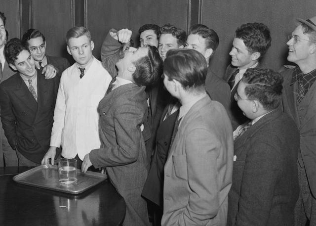 Az egyik legbizarrabb „divat” kétségkívül az aranyhalnyelés volt, ami 1939-ben vált az Egyesült Államokban népszerűvé. A Harvard egyik hallgatója, bizonyos Lothrop Withington Jr. 10 dollárba fogadott, hogy márpedig vetélytársával ellentétben, ő le mer nyelni egy élő aranyhalat. Lenyelte, nem történt vele semmi. Csakhamar azonban egyre többek kezdték utánozni, bár nem egészen világos, milyen okból: