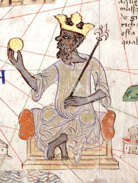 Az atlaszban Muszát a trónján ülve, egy aranygömbbel a kezében ábrázolták, aki nyugat-afrikai királyként, Guinea uraként a földjén lévő arany miatt rendkívüli gazdaságra tett szert.
