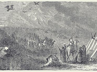 A perzsák elindultak az oázisból a homokos tájon keresztül, és már körülbelül félúton voltak a templom felé, amikor a déli étkezésük közben nyugat felől erős és halálos szél támadt, amely hatalmas, kavargó homokoszlopokat hozott magával, amelyek teljesen betemették a csapatokat, és teljesen eltüntették őket