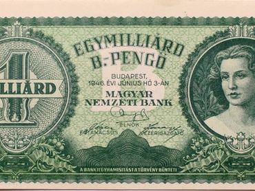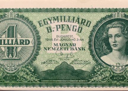 1946 júliusában nyomták ki a világtörténelem legnagyobb címletű bankjegyét, az egymilliárd bilpengőst (meg sem kísérelték rápasszírozni a 21 darab nullát, a bilpengőt pedig már elejétől b-pengőnek rövidítették, hogy ne sokkolják a vásárlókat), ami azonban már nem került forgalomba.