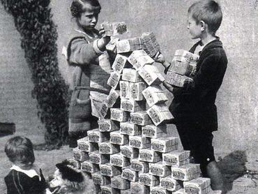 Az első világháborút követő gazdasági válság következtében a német márka teljesen elveszítette értékét, havi szinten 30 ezer százalékos volt a pénzromlás. A hiperinfláció csúcsán az árak kevesebb mint 4 nap alatt megduplázódtak. Egy kenyér 200 milliárd márkába került, így az emberek szó szerint bőröndnyi bankjegyekkel jártak vásárolni. A legnagyobb címlet 100 billiárd márka volt, de ebből is kézikocsiszámra kellett vinni egy nagyobb piaci beszerzőkörútra. A stabilizáció végül egy új pénznem, a Rentenmark bevezetésével vált lehetővé, amely alapot teremtett a gazdaság újjáépítéséhez.