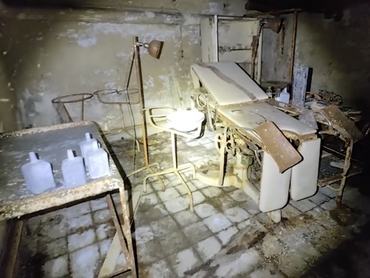 Lépcső vezet le a mélybe, alján újabb ajtó tátong, mögötte egy eldugott szoba. A falakon régi kapcsolótáblák sorjáznak, a sarokban rozsdás orvosi szék áll, a padlón ezüstös gyöngyök sorakoznak – kifolyt higany szerteszét, groteszk mintázatot rajzolva a nedves betonra. Minden levegővétel szinte tapinthatóvá teszi a veszélyt: a higanygőz belélegzése életveszélyes lehet, ezért minden perc számít. Az orvosi eszközök és a titokzatos gépek látványa azonban nem ereszt: vajon milyen kísérletek folyhattak itt?
