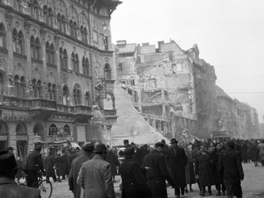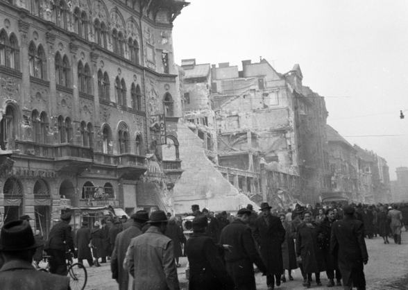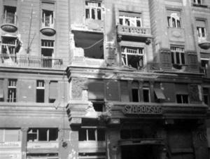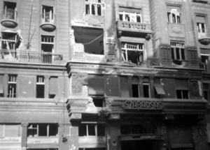 „Gyér volt a közvilágítás, szemerkélő eső áztatta a kihalt utcát, kék szikrát vetve, csörömpölve haladt a villamos, szomorú volt a légkör. Ahogy ágyba bújtam, észrevettem, hogy a szobámban a falakon még látható a becsapódott lövedékek nyoma.”