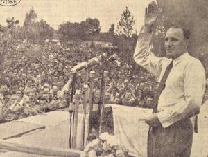 Augusztus 20-án García Márquezt és a delegáció tagjait Kisújszállásra vitték, ahol Kádár János – korabeli újságcikkek szerint – több mint százezer ember előtt mondott beszédet. Az író valamiért (a szerinte Budapesttől százhúsz kilométerre található) Újpestet jelöli meg az esemény színhelyeként, és szinte idilli képet fest róla: a „vidám színű házakkal körülvett, szobor nélküli, aprócska téren”, fagylalt-és kolbászárusok között találkozott az emelvényre igyekvő Kádárral, aki „közönséges, krémszínű szövetöltönyt meg szolid, zöld selyem nyakkendőt viselt, s egy jóságos, házias férfi megnyerő benyomását keltette”. Márquez írásából úgy tűnik, rokonszenvesnek találta a politikust: „Egyszerűen döbbenetes ez a természetes szerénység, az, hogy egyáltalán nincs benne semmilyen hivataloskodás, hogy úgy néz ki, mint aki vasárnaponként az állatkertbe jár, és mogyorót dob az elefántoknak. (…) közvetlen, jól szerkesztett, rövid beszédet mondott, amelyből nekem az tűnt a legőszintébbnek és egyedül igazán fontosnak, amit az első mondat keserű igazsága mondott ki: »Tudom jól, hogy nagyon kevesen kedvelik a kormányomat.«”