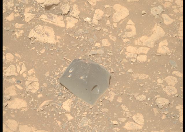 A szikladarab szögletes felszínű, színe sötét, meglehetősen kontrasztosan emelkedik ki a tájból, űrben is szokatlan módon. Felszínét megfigyelve még kisebb bemélyedésekre is figyelmesek lehetünk rajta, írja a NASA.