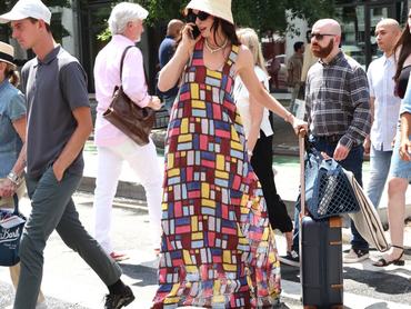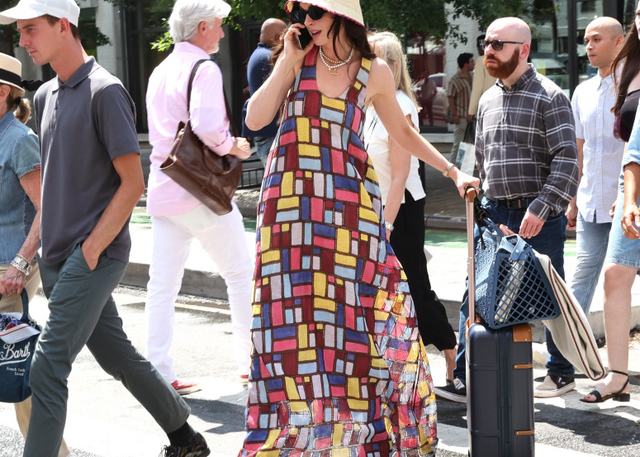 Nem véletlenül emelik ki a divatlapok, hogy az eddig lencsevégre kapott szettek alapján a nagy győztes a nemzetközi Hearst Corporation médiavállalat egyik örökösének felesége, Gabriela Hearst, aki ezt a fenti képen látható 2,7 millió forintos ruhát is tervezte. A cipő hozzá Chloé, a kosárszerű, 600 ezer forintos táska Fendi, a sapka Shebobo Kate, a napszemüveg Bulgari. A gyöngysor Marlo Laz, potom 8,7 millió forintért.