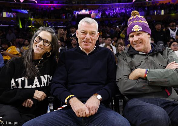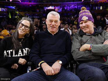 Jami Gertz, a világ leggazdagabb színésznője férjével és a színész Will Ferrell-lel egy Atlanta Hawks-meccsen (Ferrell a Lakersnek szurkol)