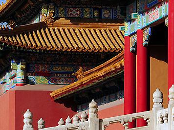 A sárga, az ég küldöttje, az uralkodó és maga a birodalom szimbolikája így fonódik össze teljesen. A sárga, mint császári szín, nemcsak a ruhákon, hanem az épített környezetben is megjelent, a Tiltott Város palota komplexumának épületein. A tetőt sárga mázas cserèpedények alkotják. Kiváltság volt a használata, más ember nem díszíthette sárga cseréppel a házát,