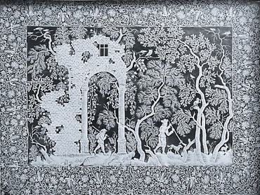 papírkivágással, selyemhímzéssel, csipkekészítéssel, festéssel; készített alkotásokat gyémánttal üvegre karcolva és viaszból öntve is.