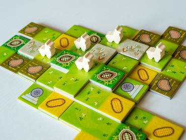 Nekem eszembe sem jutott, hogy a Llamalandet a Tetrishez hasonlítsam, pedig van benne valami. A játékban inka farmerek vagyunk, akik teraszosan művelik földjeiket, kukoricát, kakaóbabot, burgonyát termesztve és természetesen lámákat legeltetve. Minden körben lehelyezhetünk egy ültetvényeket, falvakat és legelőket tartalmazó, tetris-alakzat formájú földlapkát, aminek illeszkednie kell a már lerakottakhoz akár melléjük, akár rájuk tesszük. Az így lefedett területek után kaphatjuk meg a terményeinket, amikből pedig lámákat vásárolhatunk. Az apró lámafigurákat bizonyos céloknak megfelelve helyezzük le a folyton formálódó táblánkon, a játék végén így is pontokat zsebelhetünk be.