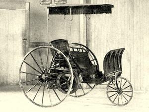 Az első koncepciója úgy nézett ki, mint egy lovaskocsi, csak ló nélkül. Első autója végül egy háromkerekű kocsi lett, motorral. Ezt a három kerékből az elsővel lehetett kormányozni.