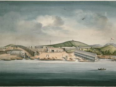 Macquarie Harbour büntetőtelepe, William Buelow Gould elítélt festménye (1833)
