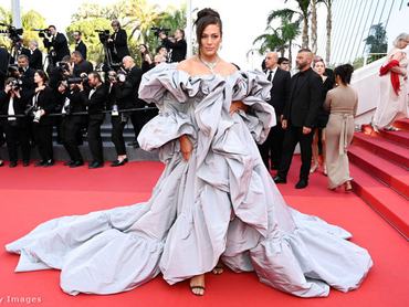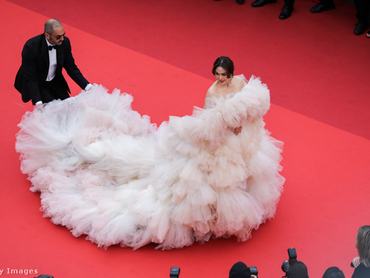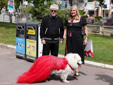 Idén tavasszal Cannes nem az első olyan társadalmilag jegyzett esemény, ahol egy-egy felöltött ruhára milliók figyelhetnek, ezért a kreativitás l'art pour l'art kibontakoztatása mellett egyfajta üzenőfalként is szolgálhat egy feltűnő alkotás. A közben éppen dúló háborút az ünneplő celebtömeg eszébe juttató kék-sárga kombináció például, III. Károly koronázási ünnepségén éppen úgy megjelent, mint a 76. cannes-i filmfesztivál jeles darabjai között. Bár, ez az ünneplő tömegből úgy tűnik, a kutyát nem érdekelte…