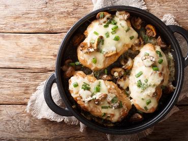 A zsiradékok keverékén süsd meg a besózott húst a fokhagymával együtt. Ha elkészült, tedd rá a sajtszeeteket és egy fedőt, majd pihentesd 5-8 percen át. Kakukkfűvel, citromhéjjal és néhány csepp citromlével a tetején tálald.