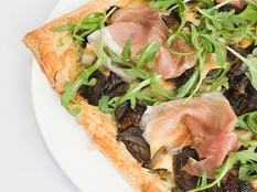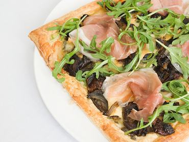 A tésztát kézzel nyújtsd vékonyra, mert ezt a pizzát nem szabad túl sokáig sütni. A forró zsiradékok keverékén süsd néhány percig a hagymát, majd add hozzá a májat, fokhagymát, bacont és a fűszereket. Süsd majdnem egészen készre néhány perc alatt. A tésztát kend meg a mascarpone és tejföl keverékével, arra mehet a máj és a sajt, majd süsd készre a forró sütöben 10 perc alatt. Petrezselyemmel a tetején tálald.