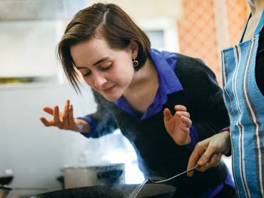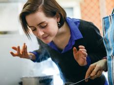 „Amikor magamnak főzök, tudatosan főzök – mondja. – És hajlamos vagyok olyan könnyű, de ízekben gazdag ételeket választani, mint a bárányborda, ami meglehetősen gyorsan elkészül.”
