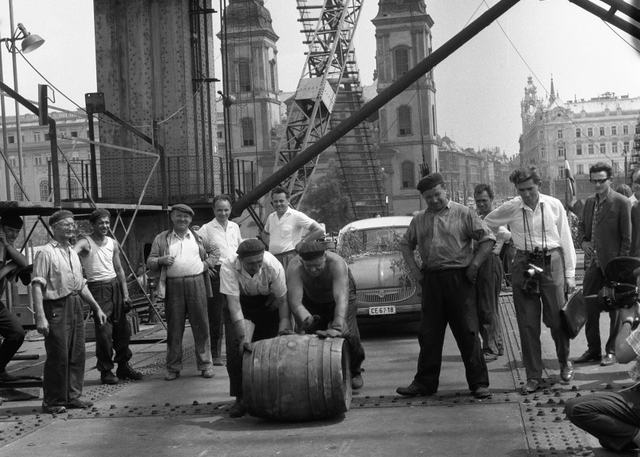 Csakhogy az építők nem készültek el időre, Budapest ünnepi díszbe öltözésekor még csak a szilárdsági próbák zajlottak. Ez volt az a pillanat, amikor a hídnak meg kellett mutatnia, hogy méltó a város bizalmára. A helyi közlekedési vállalatok nem aprózták el a dolgot: a próbaterheléshez összesen 42 villamoskocsit és hév-mozdonyt, 67 buszt, 24 locsolókocsit és 22 további teherautót állítottak rá az új építményre. A kék, sárga és zöld kocsik sűrű egymásutánja teljesen beborította a hidat. Az emberek a rakpartokról figyelték lélegzetvisszafojtva: vajon bírja-e a szerkezet. Ahogy a villamosok megindultak, majd megálltak, a híd beleremegett, 68 centiméternyit süllyedt, de stabilan állt. A próbát siker koronázta, és szinte hallani lehetett, amint a város egyszerre fellélegzett.
