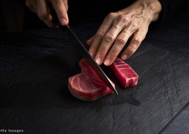 40 perc alatt megvan: nyers és fagyasztott tonhalat használjunk hozzá, amit még szilárd, fagyos állapotban nagyjából 2 × 2 cm-es kockákra tudunk vágni.