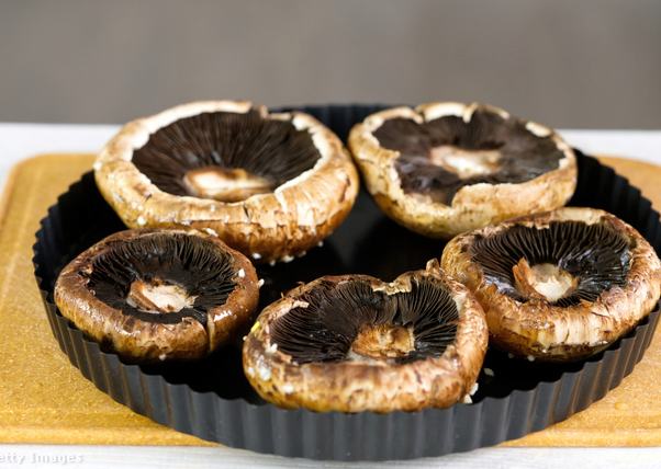 Talán még ennyi idő sem kell a töltött gombafejekhez, amelyek levágott szárait apró darabkákra vágva felaprított vöröshagymával és fokhagymával keverünk össze. Közben forró serpenyőben egy cseppnyi olívaolajon aranybarnára pirítjuk a gombakalapokat.