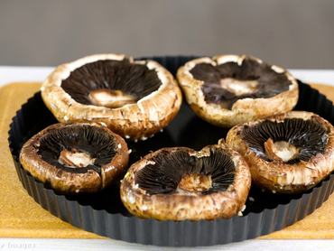 Míg a kiszedett gombafejek pihennek, ugyanabban a serpenyőben elkészítjük a vöröshagymából, aprított gombaszárból, fokhagymából álló tölteléket, melyet friss petrezselyemmel is ízesítünk. A 200 fokra előmelegített sütőben később készre sütjük a töltelékkel megspékelt gombakalapkákat, melyek mindegyikére a sütőbe tolás előtt nyers fürjtojást ütünk. A sütőből kiszedve azonnal tálaljuk, sózva-borsozva.